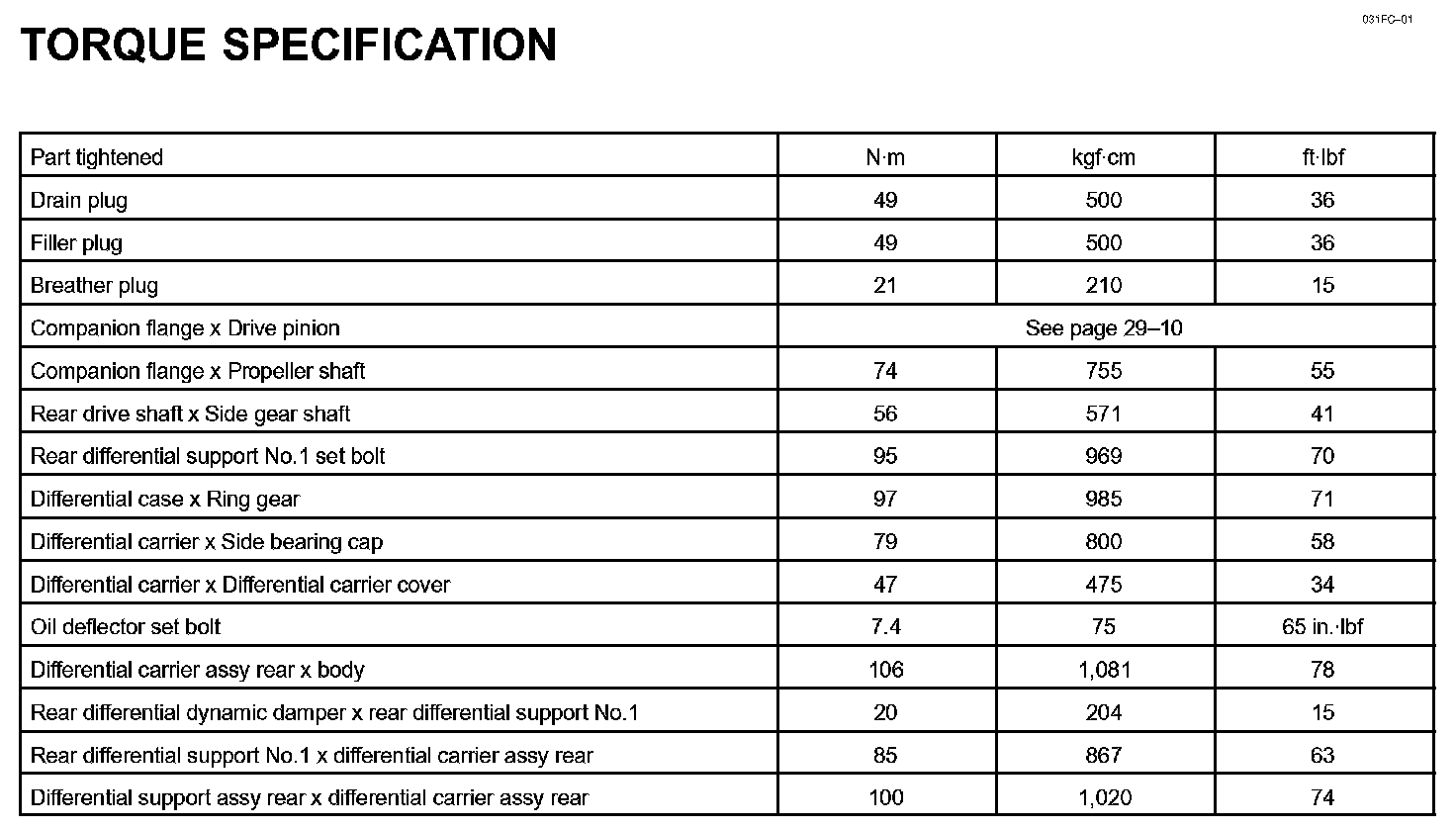 Differential - Torque Specification:
