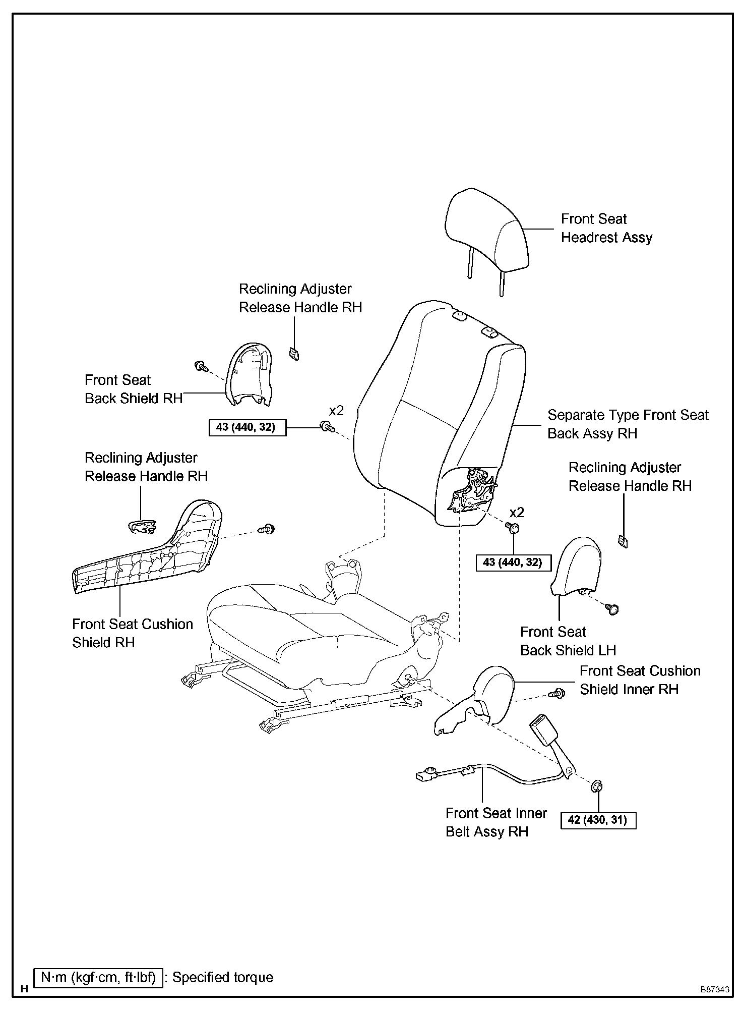 Front Seat Assy RH (Separate Seat Type (W/Mechanism For Folding Seat Forward)):