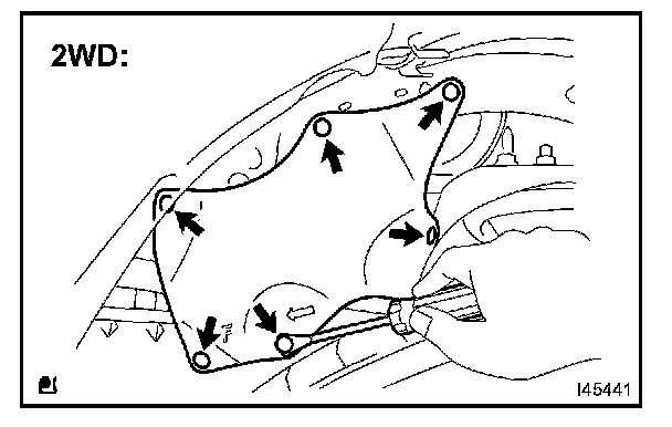 b. Using a clip remover, disengage the 6 clips and remove the front fender apron seal upper. (2WD)