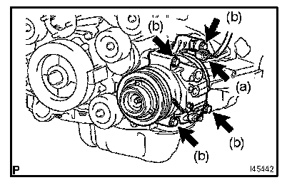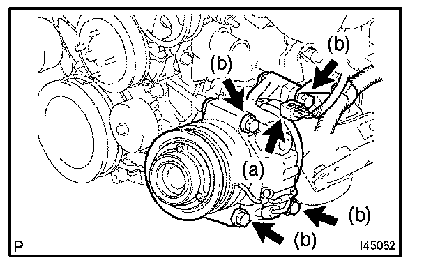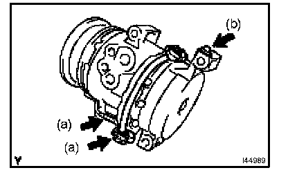 a. Provisionally tighten the compressor and magnetic clutch with the 4 bolts.