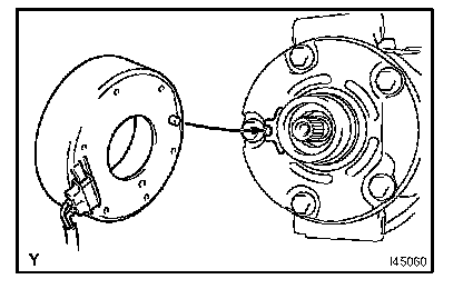 If the measured value is not within the standard clearance, remove the magnet clutch hub and adjust the clearance using compressor spacer to obtain the standard clearance.