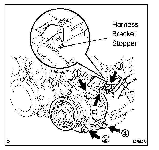 NOTE: The harness bracket stopper should be in contact with compressor case.