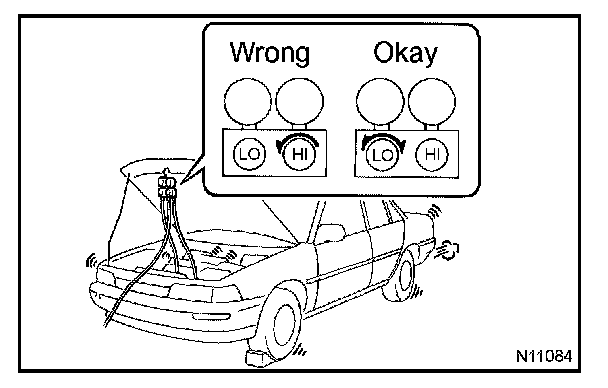 1. CONNECT THE BATTERY NEGATIVE TERMINAL TO THE CABLE AND RUN THE ENGINE AT NO LESS THAN 2,000 RPM FOR 1MINUTE.