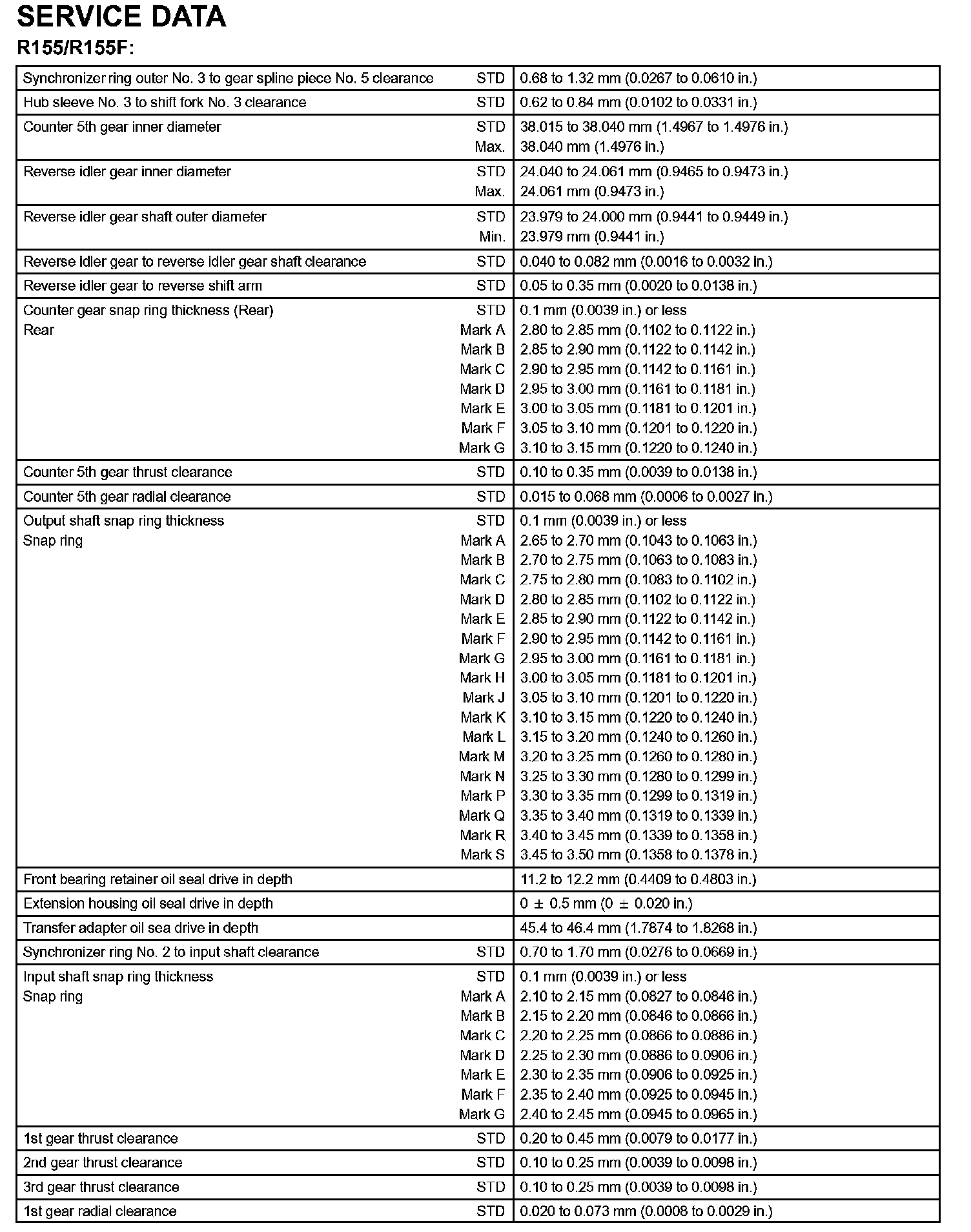 Manual Transmission/Transaxle - Service Data Part 2: