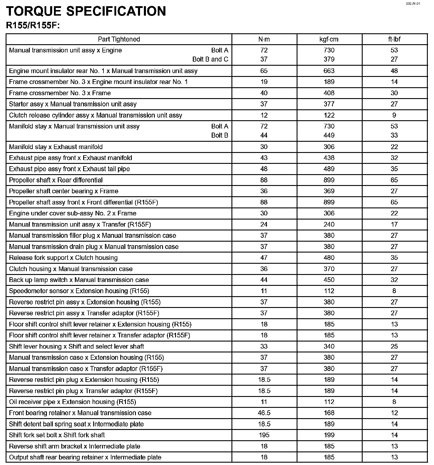 Manual Transmission/Transaxle - Torque Specification: