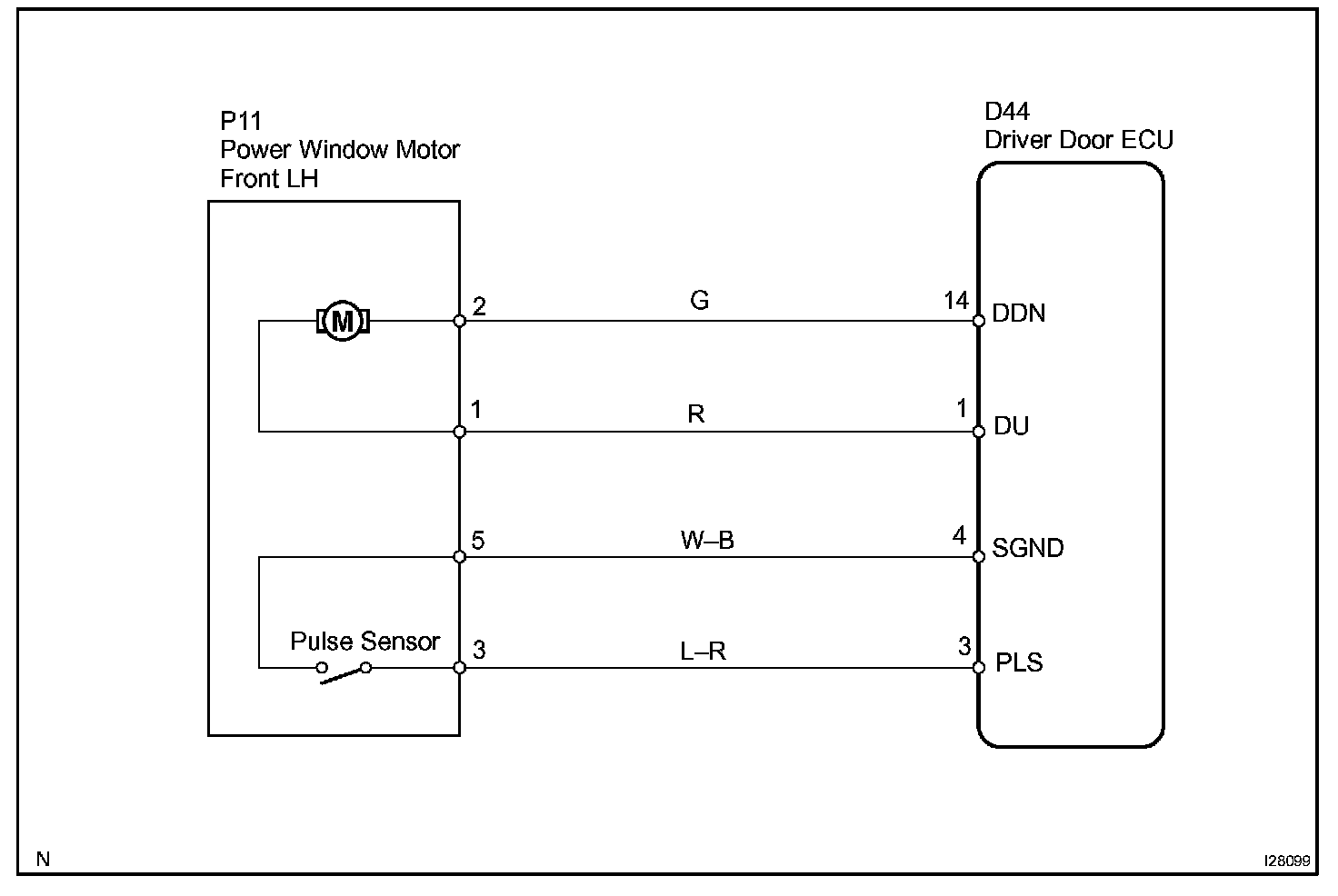 The jam protection pulse switch is built in the power window motor. The pulse switch outputs ON/OFF pulse when the motor rotates.