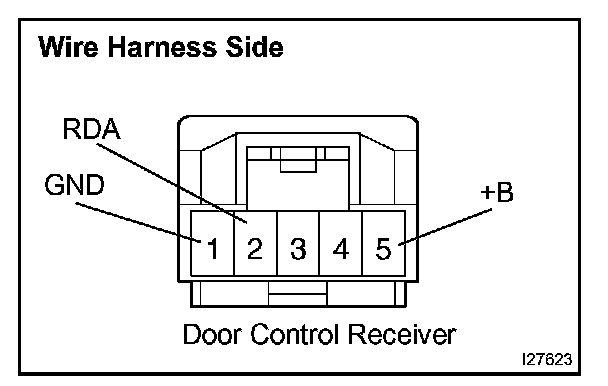 b. Check the voltage and resistance between the terminals of the wire harness side connector of the receiver and body ground.