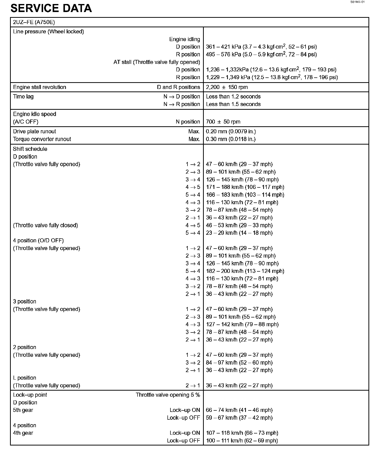 Automatic Transmission - Service Data Part 1: