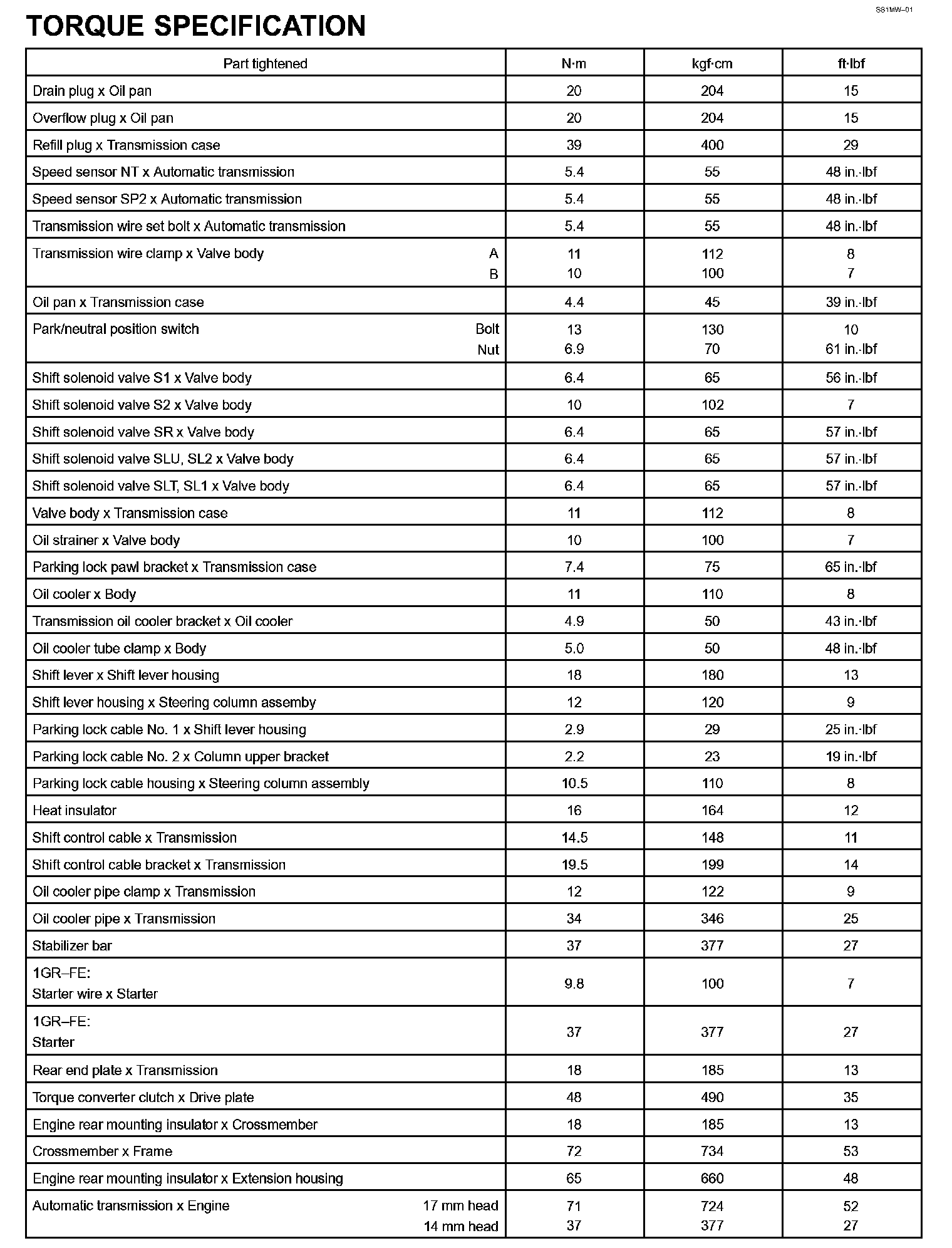 Automatic Transmission - Torque Specification: