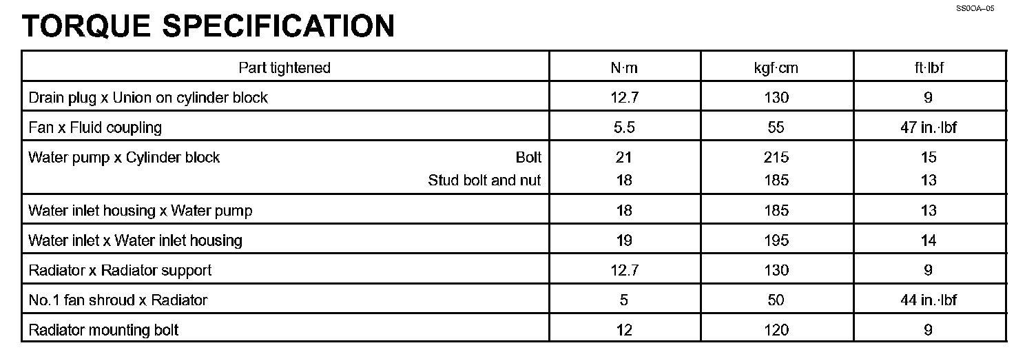 Cooling - Torque Specification: