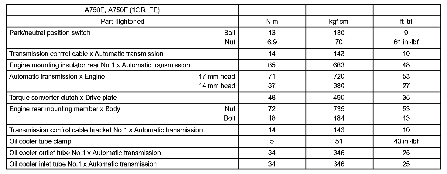 Automatic Transmission / Transaxle-Torque Specification (Part 1):