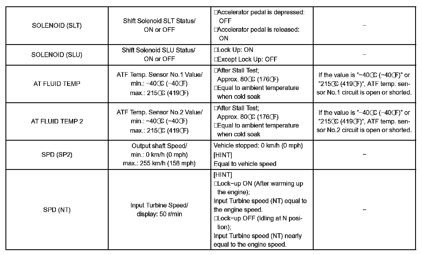 DATA LISTHINT: According to the DATA LIST displayed by the hand-held tester, you can read the value of the switch, sensor, actuator and so on without parts removal. Reading the DATA LIST as the first step of troubleshooting is one method to shorten labor time.