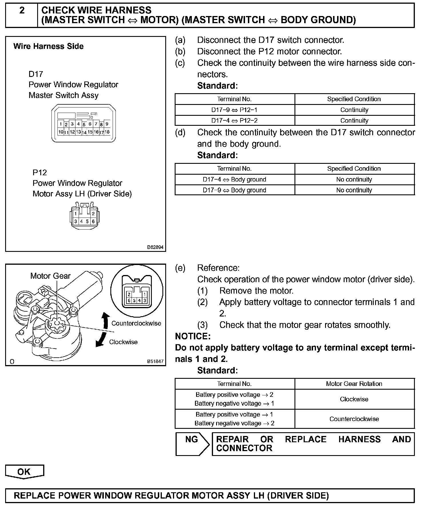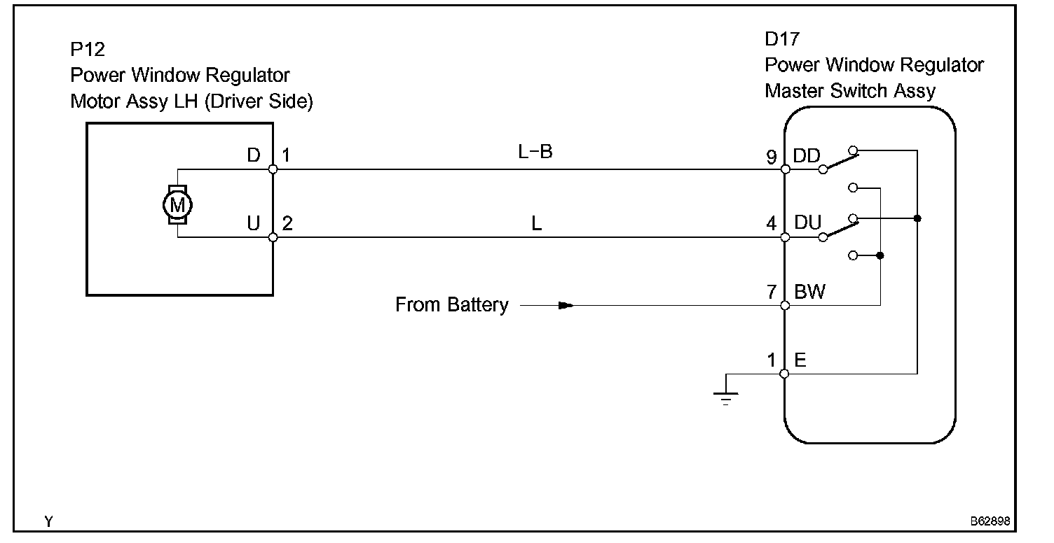 If the manual UP/DOWN function does not operate, the power window motor, the power window master switch or the wire harness is abnormal.