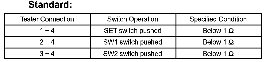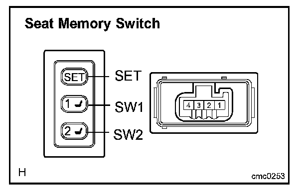 k. After the SW1 and SW2 switches are pressed together while the SET switch is held down check that the seat does not move (the seat position is not recorded) when the SW1 or SW2 switches is pressed.