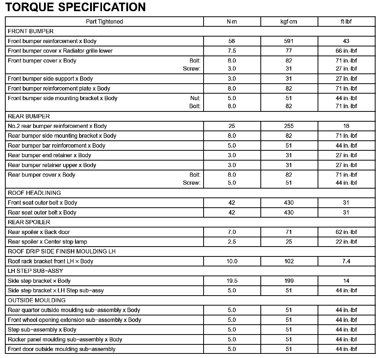 Exterior/Interor Trim-Torque Specification: