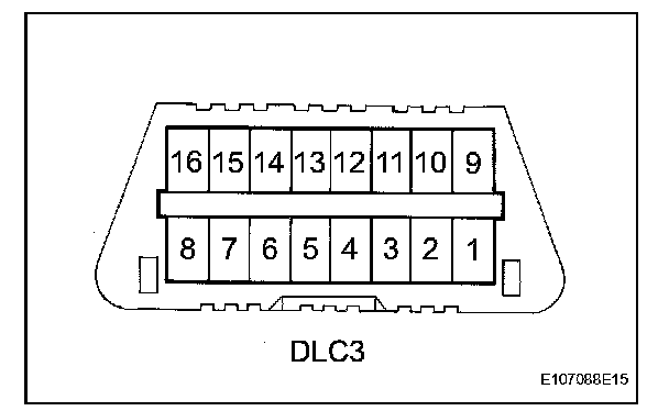CHECK DLC3a. The vehicle's hybrid vehicle control ECU uses ISO 9141-2 for communication. The terminal arrangement of DLC3 complies with SAE J1962 and matches the ISO 9141-2 format.