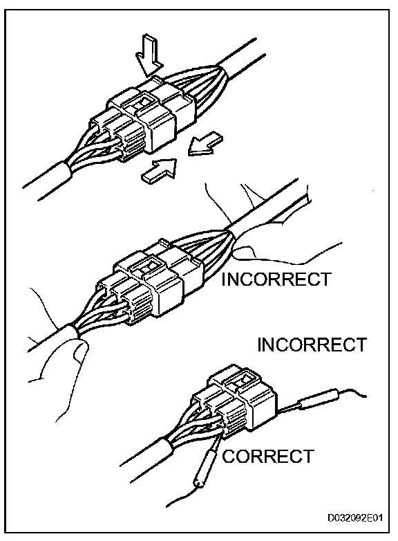 - As a waterproof connector cannot be checked from the backside, check it by connecting a sub-harness.