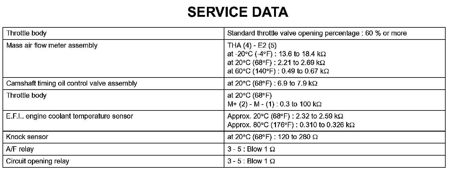 Engine Control System-Service Data: