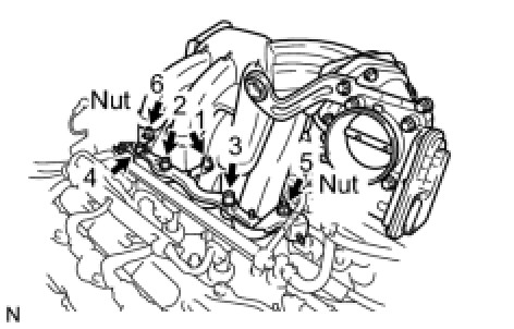 Using several steps, tighten the bolts and nuts uniformly in the sequence shown in the illustrations.