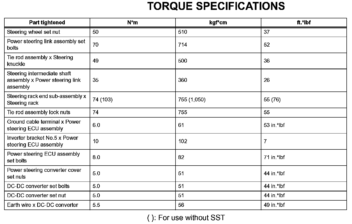Power Steering-Torque Specifications: