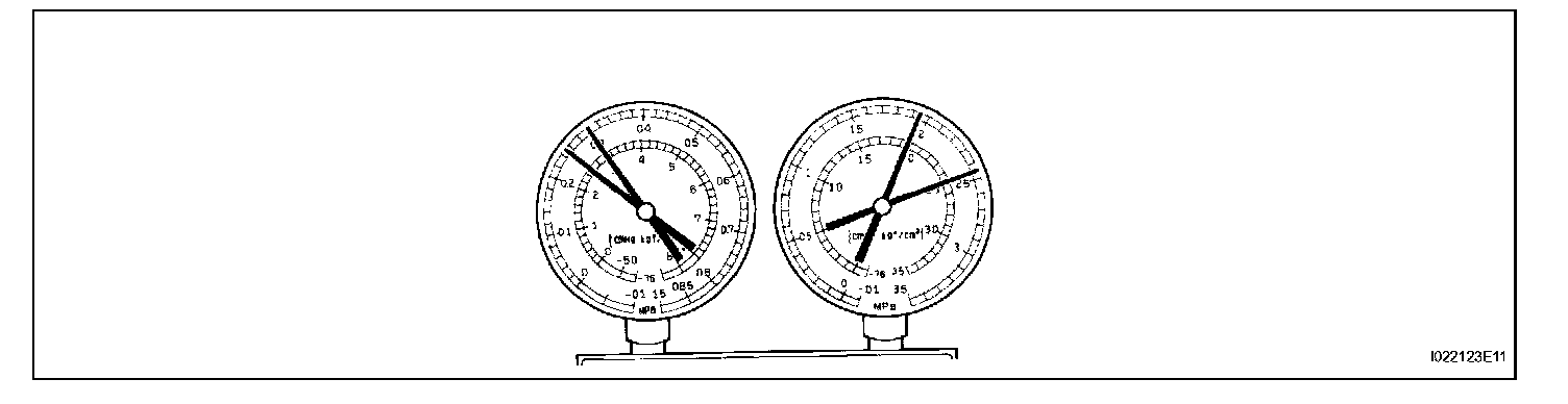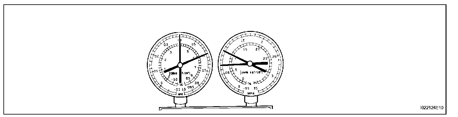 1. INSPECT REFRIGERANT PRESSURE WITH MANIFOLD GAUGE SET