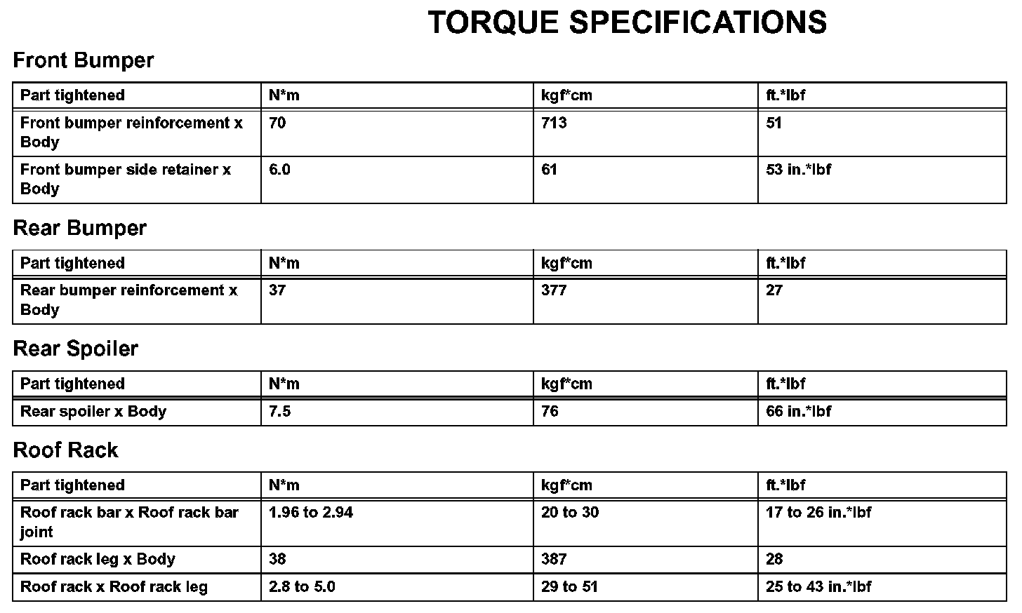 Exterior - Torque Specifications