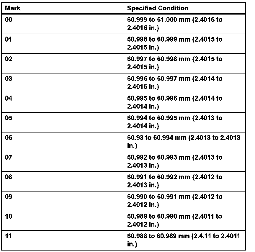 Diameter (standard) 60.988 to 61.00 mm (2.4011 to 2.4016 inch)