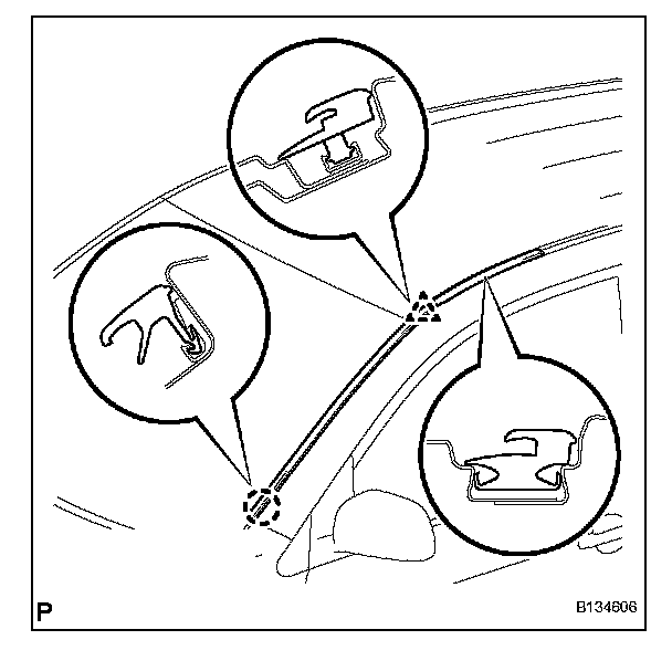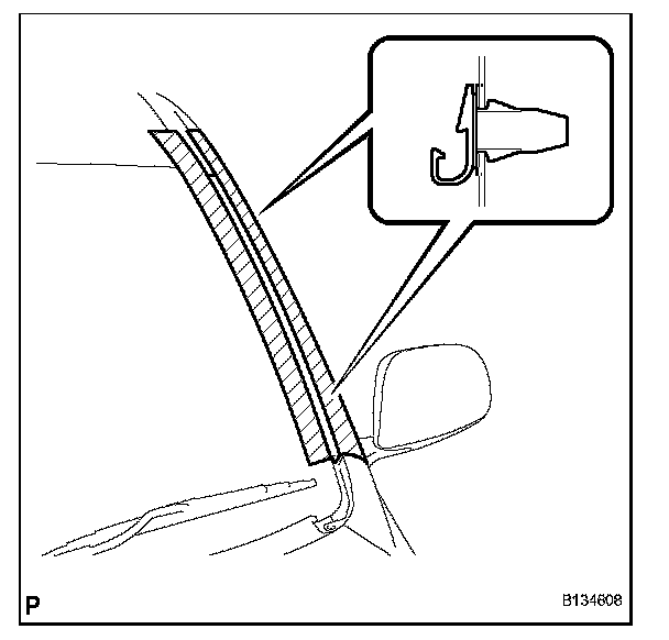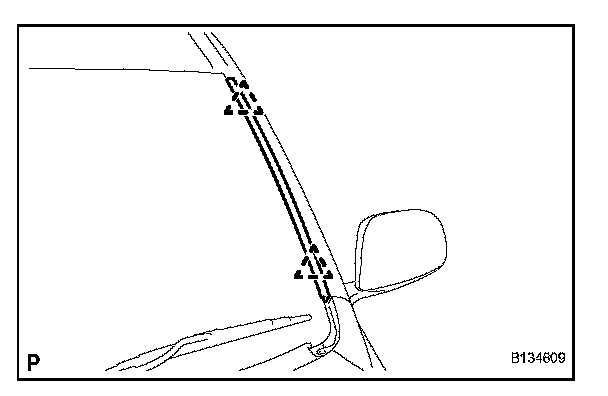 b. Install the windshield outside moulding, as shown in the illustration.