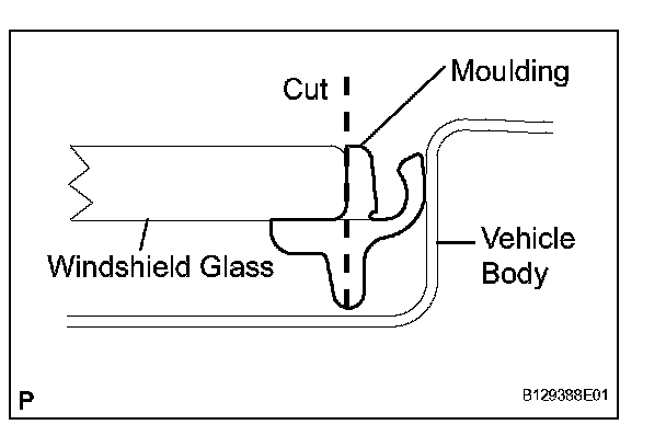 NOTE: Leave as much adhesive on the vehicle body as possible when cutting through the adhesive.