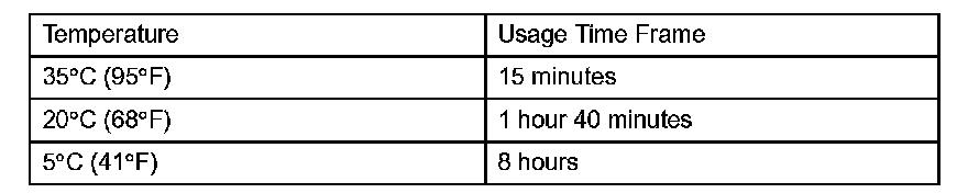 HINT: After cutting off the tip, use all adhesive within the time written in the table.