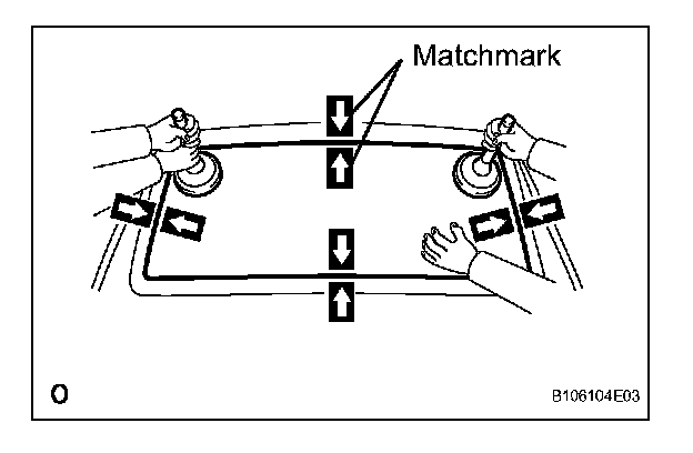 e. Place matchmarks over the glass and vehicle body on the locations indicated in the illustration.