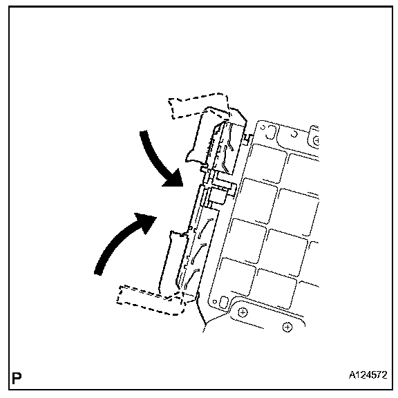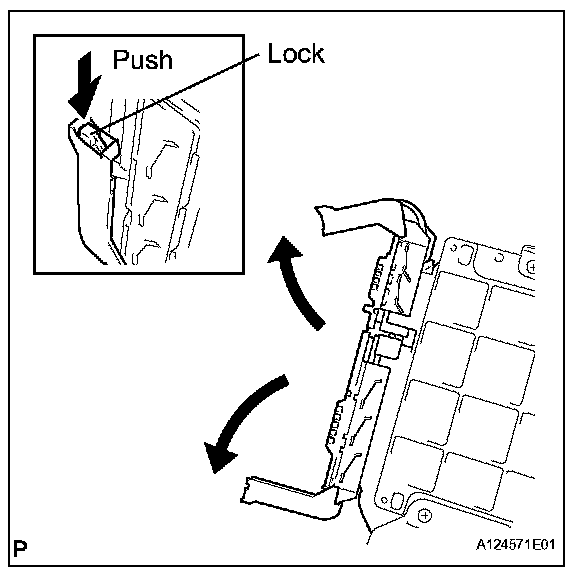 1. Raise the 2 levers while pushing the locks on the 2 levers, and disconnect the 2 ECM connectors.