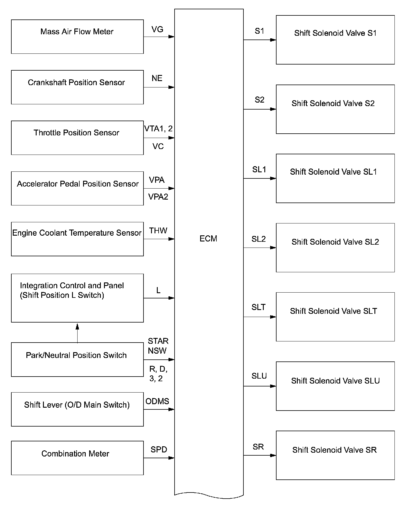 a. The Electronic Controlled Automatic Transmission (ECT) is an automatic transmission that electronically controls shift timing using the Engine Control Module (ECM). The ECM detects electrical signals that indicate engine and driving conditions, and controls the shift point, based on driver habits and road conditions. As a result, fuel efficiency and power transmission performance are improved. Shift shock has been reduced by controlling the engine and transmission simultaneously.