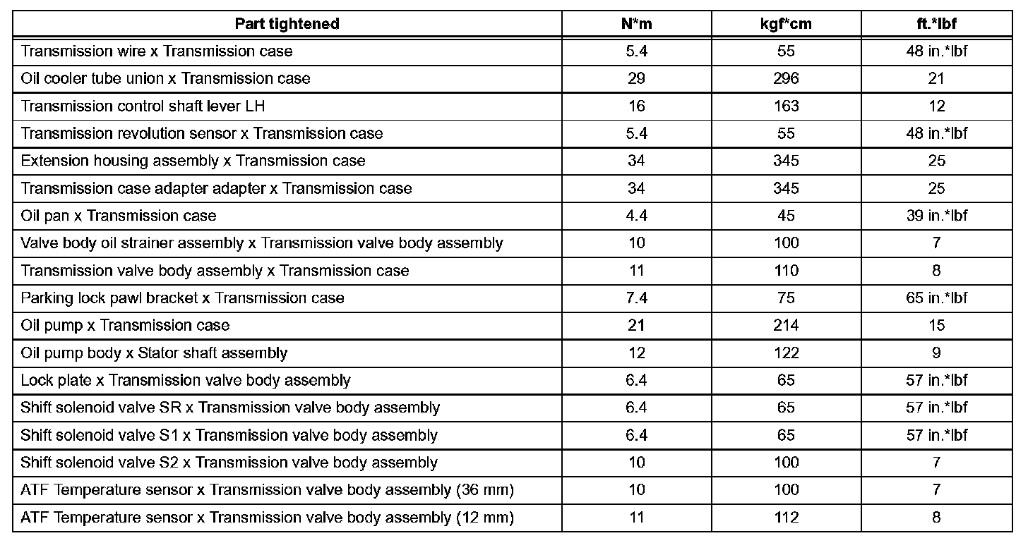 Automatic Transmission-Torque Specifications (Part 1):