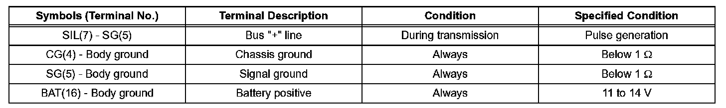 If the result is not as specified, the DLC3 may have a malfunction. Repair or replace the wire harness and connector.