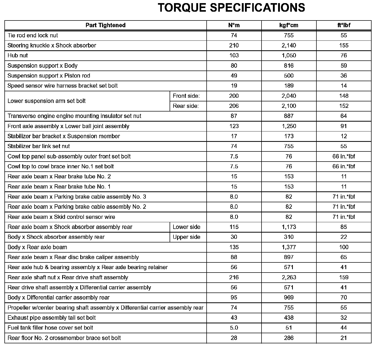 Suspension-Torque Specifications:
