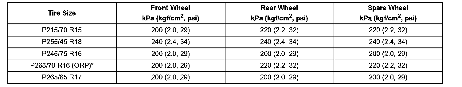 a. Set the tire pressures of all the wheels, including the spare tire, to the appropriate specified values.