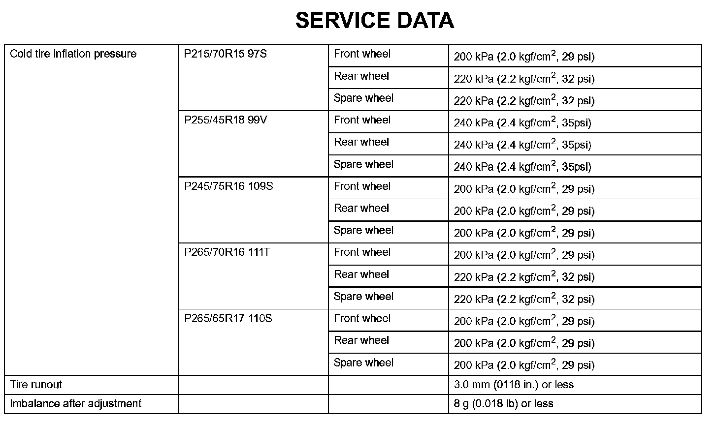 Tire And Wheel-Service Data: