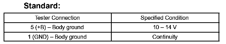 c. Reconnect the connector and check the voltage between the terminal and body ground.