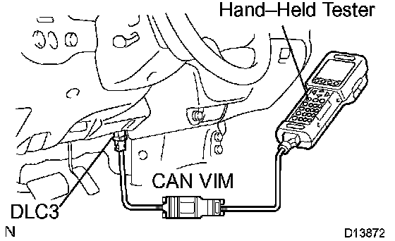 (1) Connect a hand-held tester to the Controller Area Network Vehicle Interface Module (CAN VIM). Then connect the CAN VIM to the Date Link Connector 3 (DLC3)