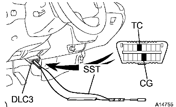 (3) Using SST, connect terminals TC and CG of the DLC3.