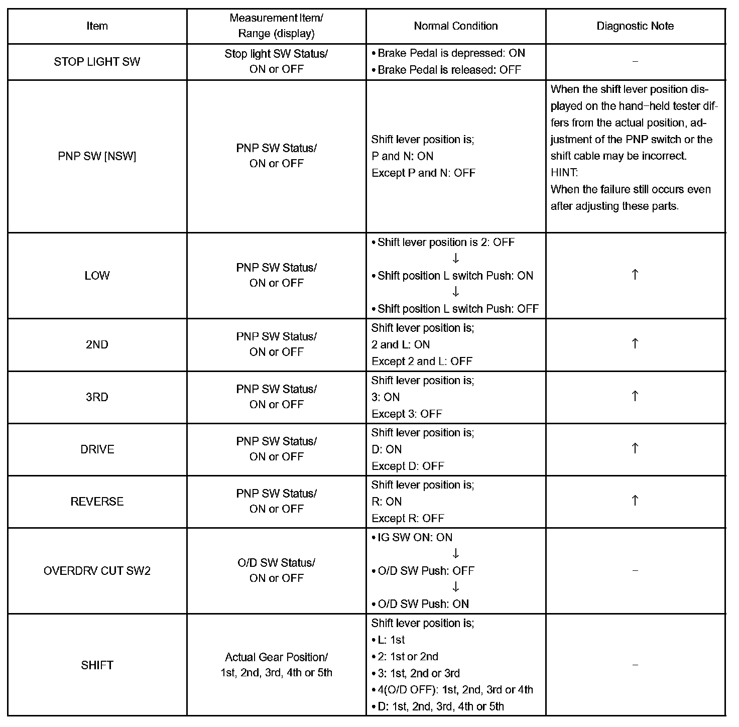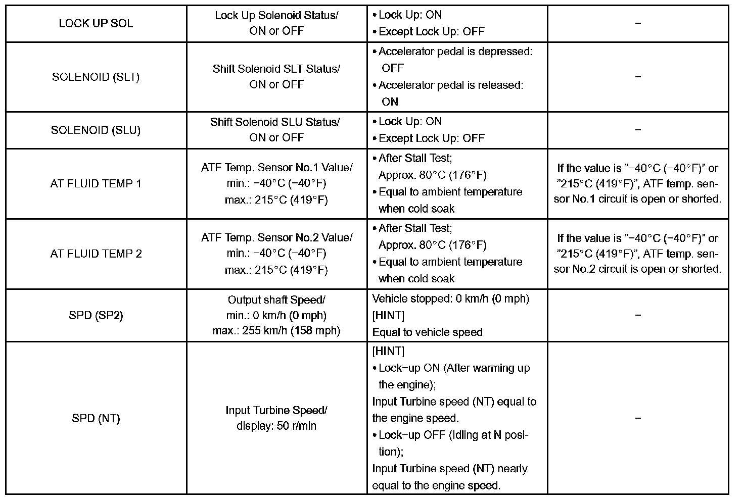 DATA LISTHINT: According to the DATA LIST displayed by the OBD II scan tool or hand-held tester, you can read the value of the switch, sensor, actuator and so on without parts removal. Reading the DATA LIST as the first step of troubleshooting is one method to shorten labor time.