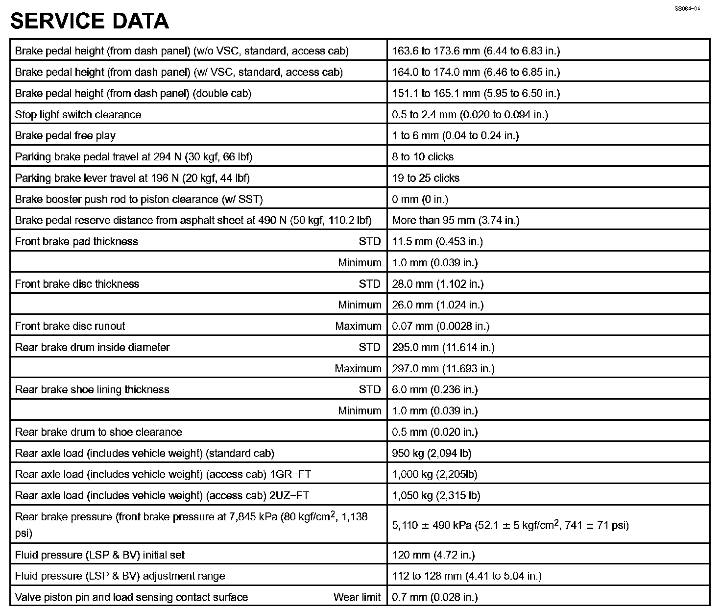 Brake-Service Data: