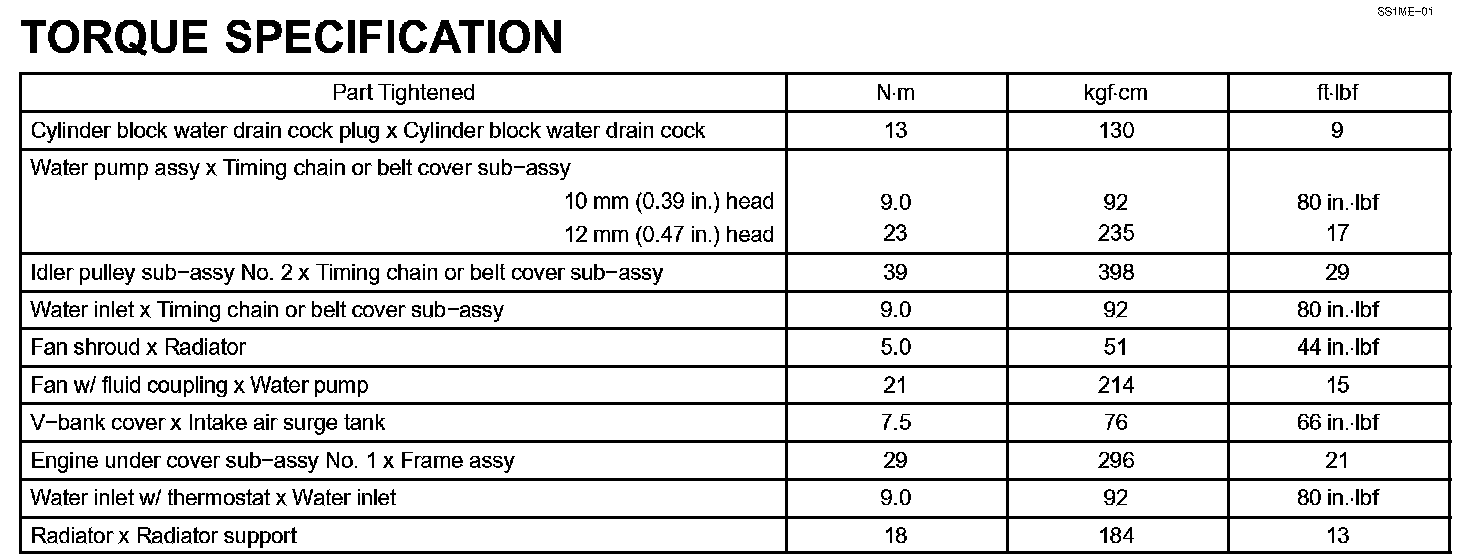 Cooling-Torque Specification: