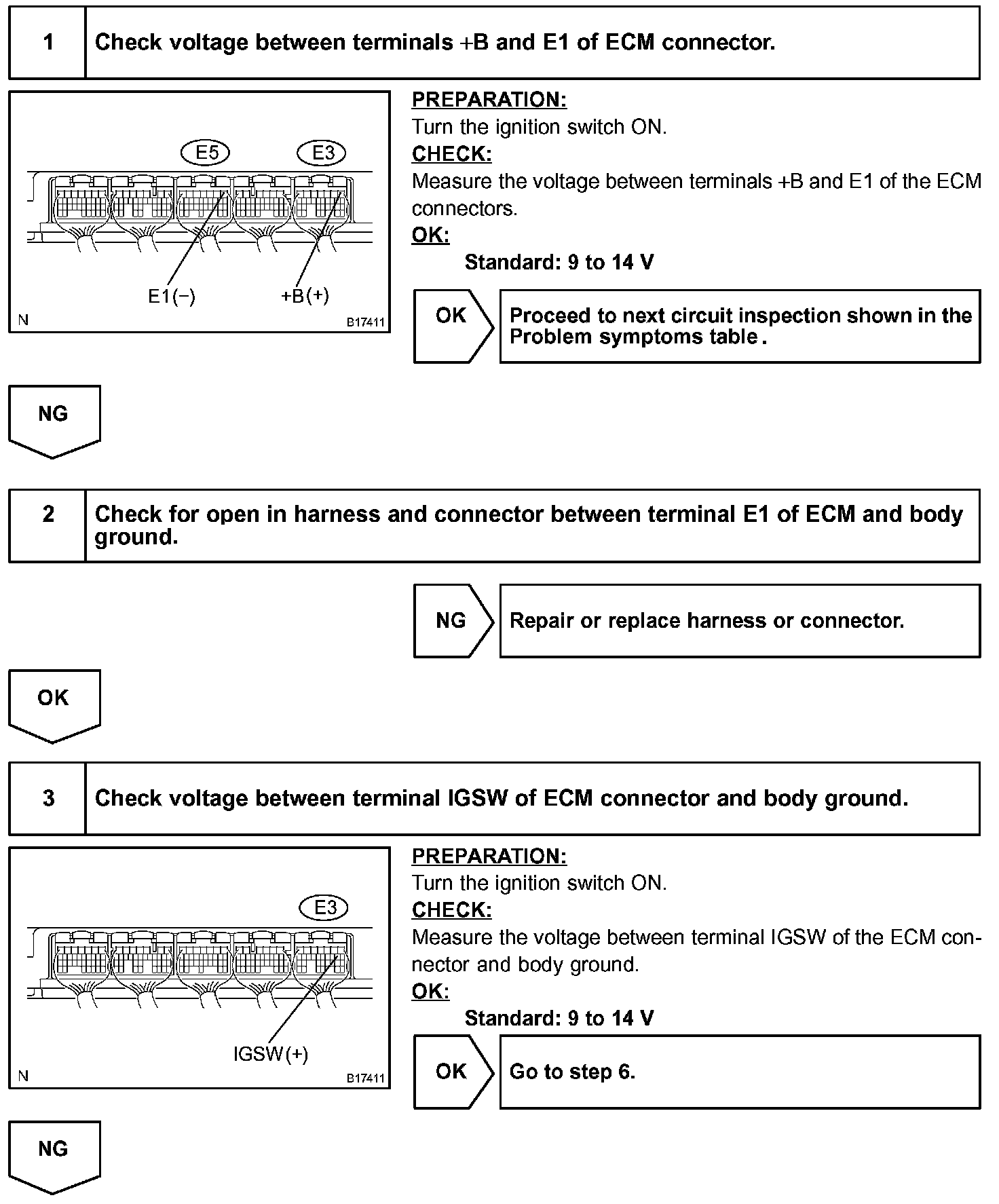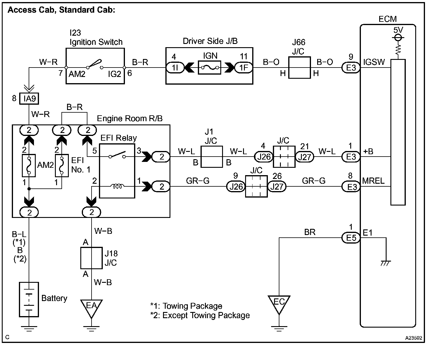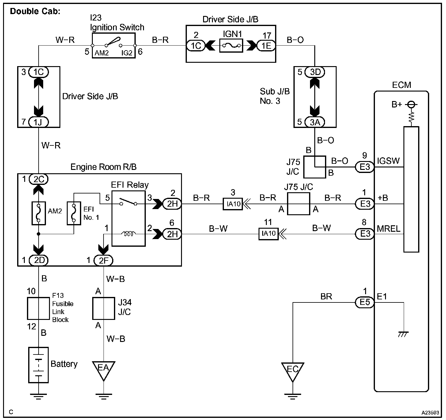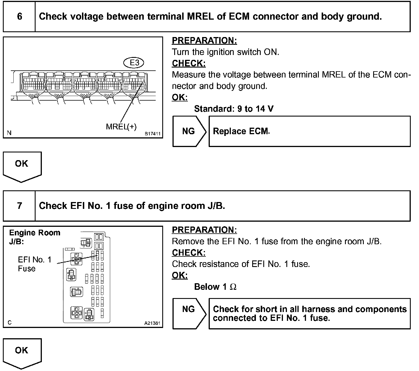 This signal causes current to flow to the coil, closing the contacts of the EFI relay and supplying power to terminal +B of the ECM.