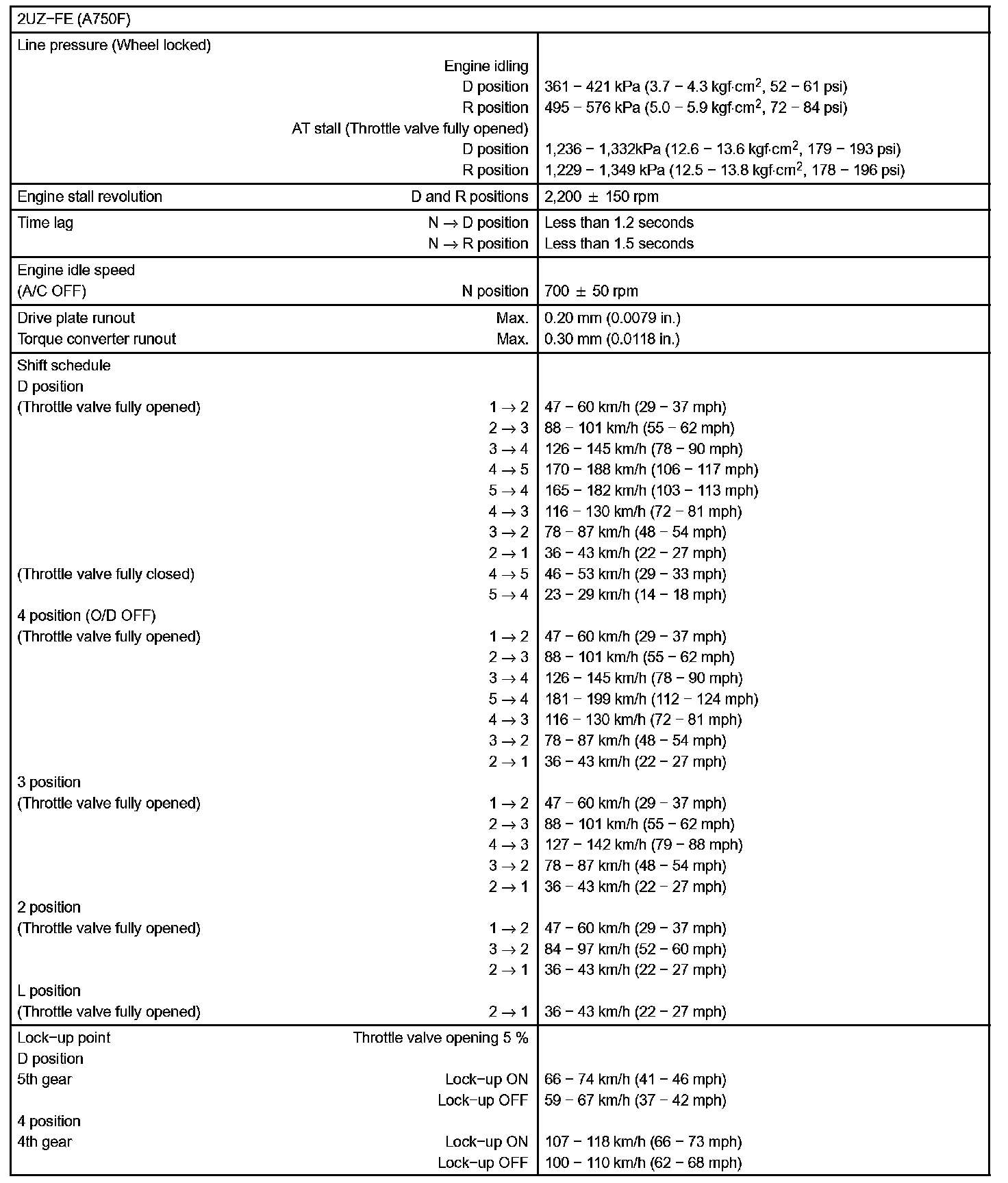 Automatic Transmission-Service Data: