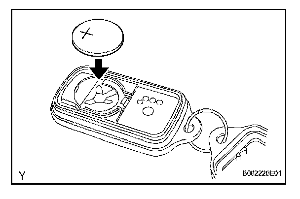 a. Install a new battery (lithium battery) with the positive (+) side up, as shown in the illustration.