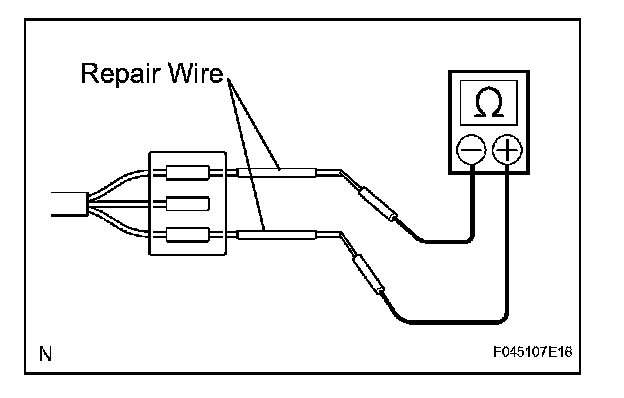b. If it is impossible to check resistance from the back of the connector, use a repair wire to check it.