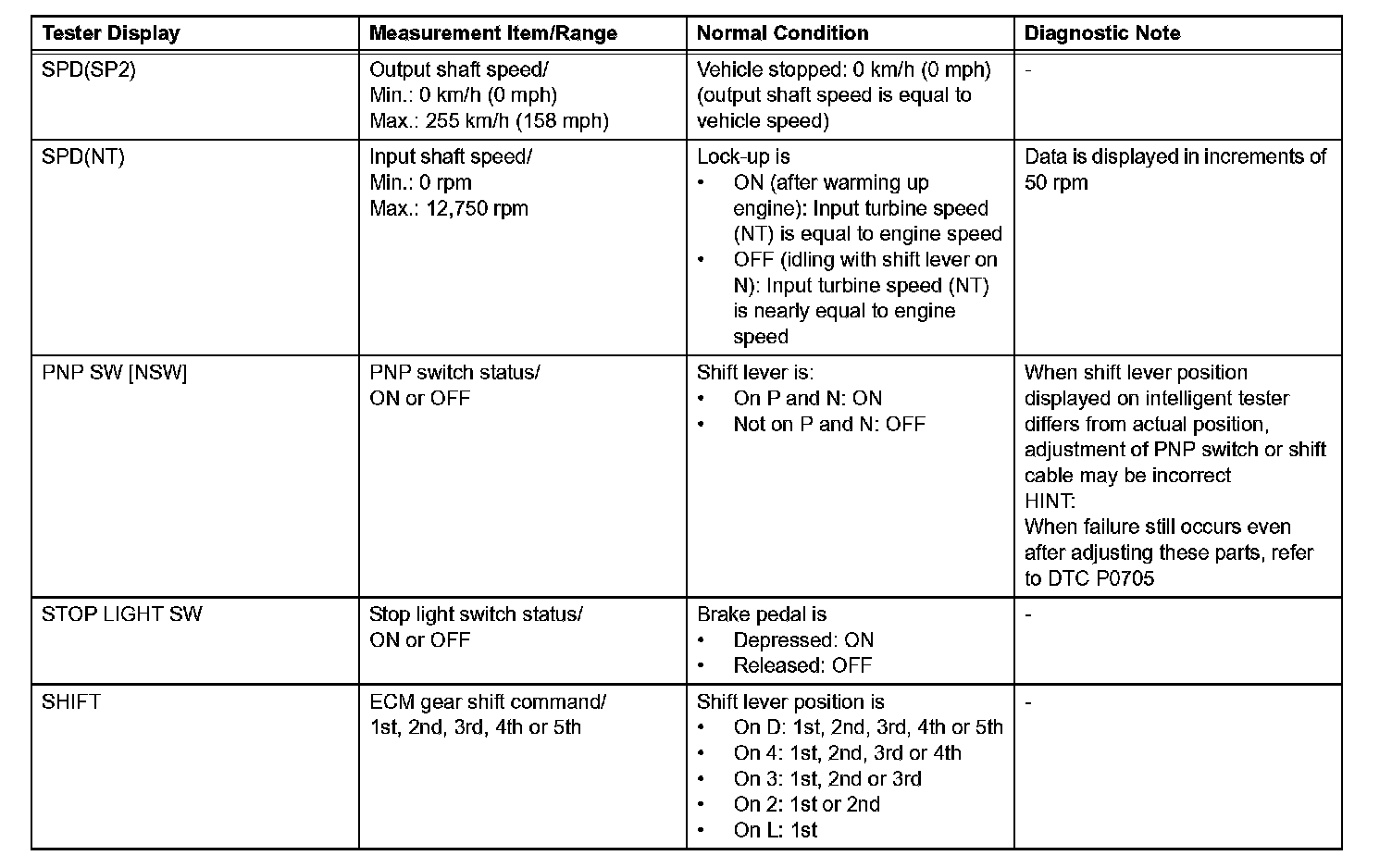 HINT: Using the intelligent tester DATA LIST allows switch, sensor, actuator and other item values to be read without removing any parts. Reading the Data List early in troubleshooting is one way to shorten labor time.