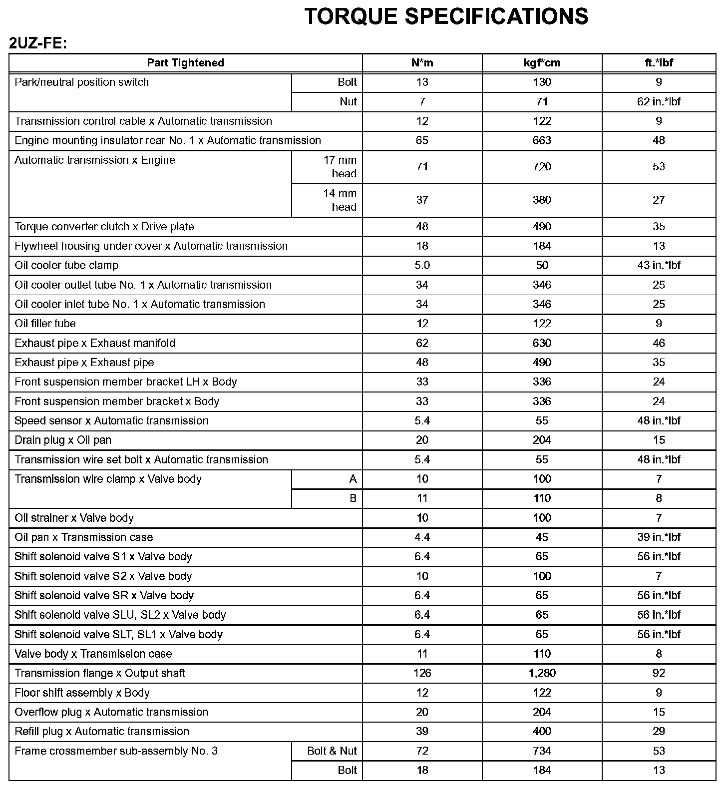 Automatic Transmission - Torque Specifications: